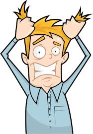 Image result for worried man cartoonMy husband met me at the door, his eyebrows in upside-down V formation, huge chunks of hair in both hands. Two signs of major worry. “Is everything okay, hon? You just went to mail one dinky package.”
